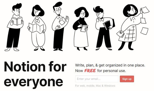 이 역시 여러 이유가 있겠지만 개인적으로는 노션 특유의 코지cozy한 일러스트가 크게 한몫했다고 본다. 이런 특유의 '감성'이 언제나 새로운 것에 목말라 있는 스타트업씬에 제대로 먹혀들어갔다는 얘기다. 지금이야 일반 기업에서도 노트앱을 많이 쓰고 있지만, 불과 2~3년 전만 해도 노트앱의 주요 타깃은 스타트업이었다.