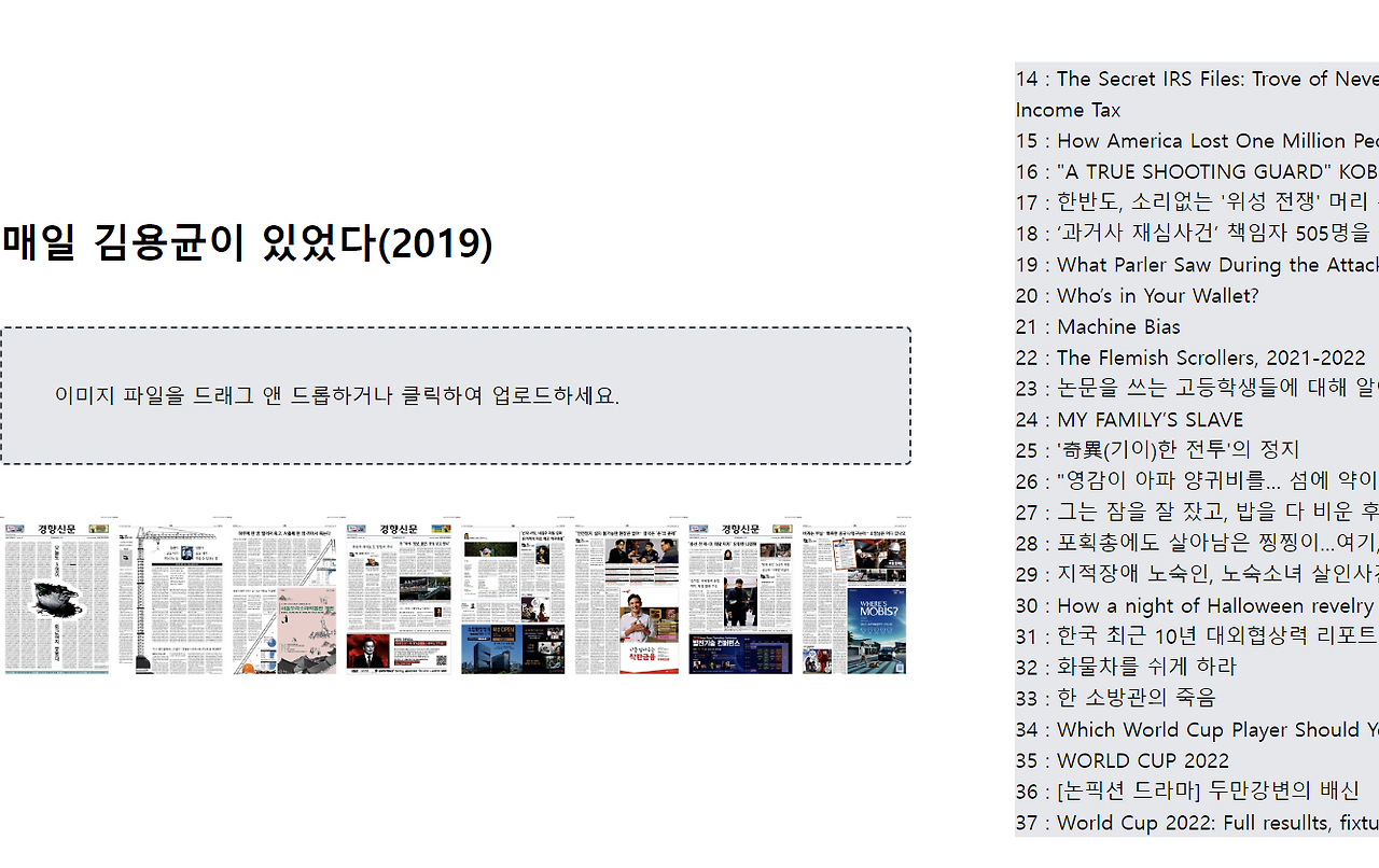 관리자만 접근 가능한 이미지 업로드 페이지. 오른쪽은 기사 인덱스.