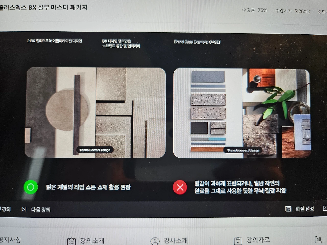 다만 '그럼 어떻게?'라는 질문에 대한 답은 아직 잘 모르겠다. 강의를 들어도 딱히 떠오르진 않는다. 강의에서는 플러스엑스팀이 작업한 하이엔드 오피스텔 'CASE1' 사례를 들어 설명하는데, '그렇구나.. 잘 했네..' 정도 느낌이랄까? 인테리어나 건축 분야는 BX디자이너와는 또 다른 전문적인 영역이니 그럴 만도 하다 싶다.