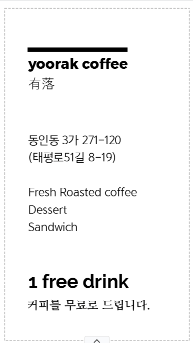 아무튼 아무리 "가오픈"이라도 가만 앉아있을 순 없겠다 싶어서 곧바로 전단지 제작에 들어갔다. 명함처럼 만들어서 횡단보도 건너편 동네 주민들에게 돌려볼 생각이다. 그쪽 동네는 신축 아파트의 영향인지, 대구 중구청의 영향인지 삭막한 느낌의 이쪽 동네와는 분위기가 사뭇 다르다. 아마 이런 공간이 만들어져 있는지도 모르고 있을 터. 출혈이 크더라도 무료 쿠폰을 살포(?)하는 쪽으로 가닥을 잡으려 한다.
