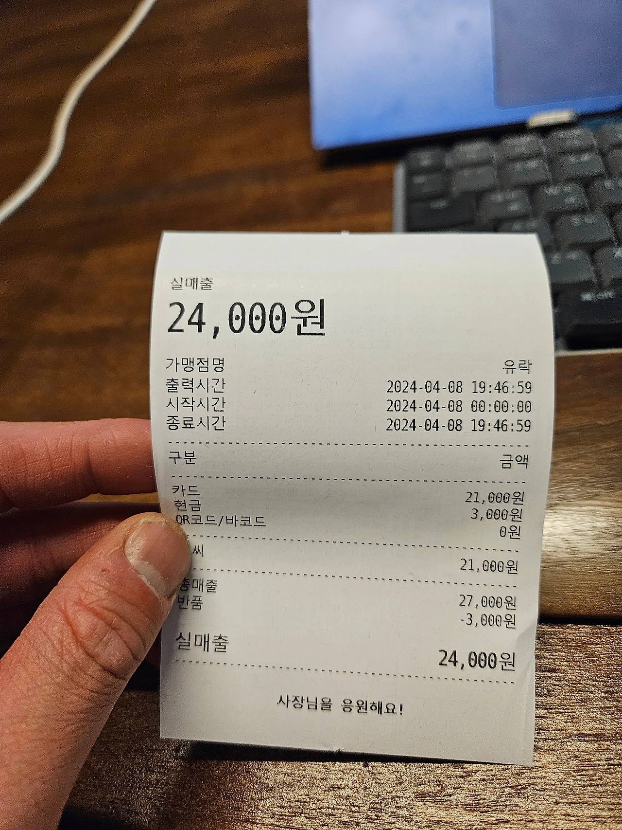 천만다행으로 하루 종일 아예 손님이 없진 않았는데(오후에서야 손님이 몇 테이블 들어왔는데, 아마 손님이 1명도 오지 않았다면 아무리 내가 멘탈이 강하다 해도 쿠크다스처럼 바스라졌을 것 같다), 첫 손님을 받을 땐 생전 처음 겪어보는 묘한 감정이 올라왔다. 그렇게 많은 아르바이트 경험에도 불구하고 처음 느끼는 감정이었다. 긴장감인 것 같기도, 감동인 것 같기도 한, 이상한 떨림이 있었다.
