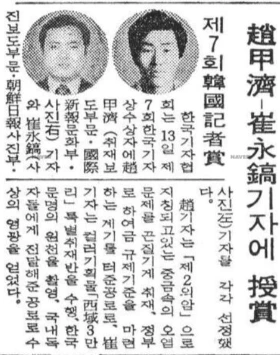 기자 조갑제는 28살 어린 나이로 한국기자상을 수상하는 등 '민완기자'로 명성을 날렸다.