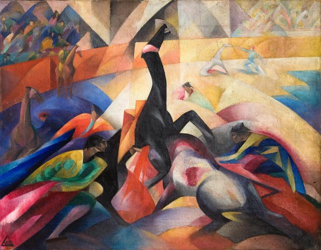 *블라디미르 베흐테예프 ‘투우’ (1919년 작) 예카테린부르크 미술관 소장*- 여기서 미래주의란, 20세기 초반 이탈리아에서 나타난 대표적인 모더니즘 미술사조로, 그 등장이 다소 독특한 것으로 잘 알려져 있음. 이탈리아의 소설가이자 시인인 필리포 마리네티는 1909년 2월 프랑스 파리의 르 피가로 지에 '미래주의(파) 선언'을 발표함으로써 미래주의(파)를 세상에 알림. 즉, 예술가가 나는 이런 예술을 하겠다고 언론에 광고를 내고 시작된 도발적인 예술 사조인 셈.