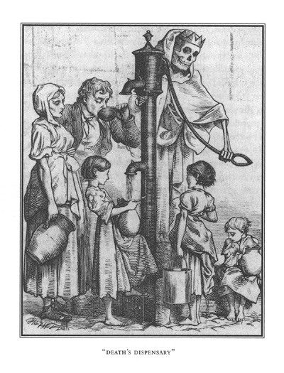 1848년 영국 보건당국의 <콜레라법>은 그 당시 상식으로는 자연스러운 결과였다. 콜레라법은 도시의 모든 오물, 정확하게는 도시의 모든 똥무더기들을 아무런 조치 없이 템스강으로 흘려보내 없애려는 법이었다. 기존에 지하실이나 집 근처 땅, 지하실에 파묻던 이런 오물들이 콜레라와 같은 도시의 질병을 키운다는 문제의식에 근거했다. 하지만 이는 전염병을 되레 키우는, 재앙에 가까운 일이었다.