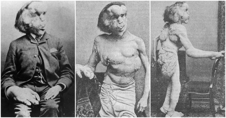 그는 신경섬유종증으로 2살부터 이마를 포함한 얼굴 군데군데에 혹 같은 것이 돋아나고, 얼굴 피부가 기형적으로 두꺼워지는 등 외모가 흉해지는 증세를 보였다. 얼굴뿐 아니라 신체도 마찬가지였다. 온몸에 혹이 생기고, 오른팔과 양쪽 발이 점점 움직이기 불편할 정도로 부어오르는 증세를 보였다. 조셉이 11살 되던 해 그를 진심으로 사랑해주던 어머니가 세상을 떠났고, 조셉의 아버지는 다음 해 겨울 재혼 했다. 메릭은 버려졌다.