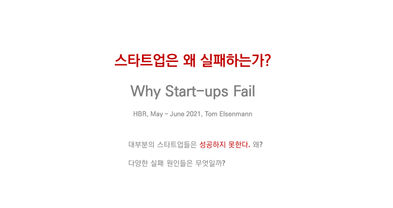 (상기의 사항들은 2021년 하버드 비즈니스 리뷰, "Why Start-ups Fail"이라는 글에서 일부 내용을 발췌해서 제 시각으로 정리하였습니다.)