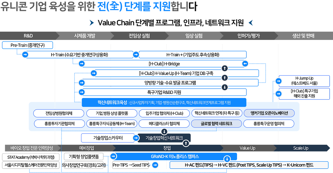 스타트업들의 성공을 지원하는 다양한 공공 기관들이 집중하는 사항 중에 하나는 "사업 성장 생태계 구축"입니다. 스타트업들의 미진한 사업 역량을 지원하기 위해서 다양한 생태계를 조성하고 구축해서 스타트업들을 지원하고자 노력합니다. (하기 홍릉 강소특구 자료 참고)