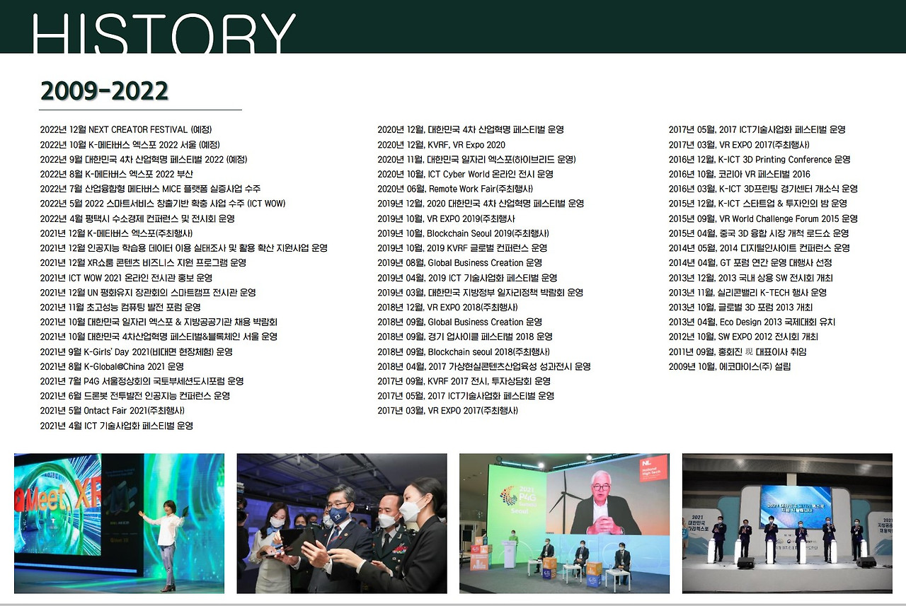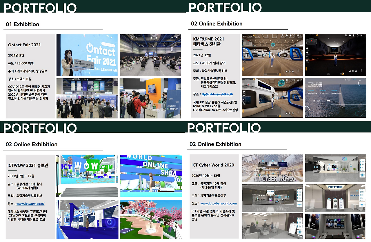 최근 온라인 전시회 흐름과 클라이언트들의 요청에 대응하면서 메타버스 전시회를 주최하게 되고, 관련 기술을 확보하고, 새로운 흐름을 선점 중인 것으로 생각됩니다. 관련 역량은 점점 더 강화되고, 시장에서의 위치가 확고해질 것으로 판단됩니다.