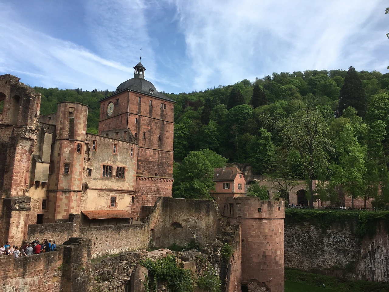 하이델베르크가 관광지로 인기를 끄는 첫째 이유는 단연 '하이델베르크 성'일 것이다. 하이델베르크 성은 1225년 요새 형태로 산 중턱에 자리잡은 이후, 여러번의 개보수를 거치다 1600년대 초에 이르러 지금의 모습을 완성했다고 하는 고성(古城)이다. 독일에는 정말 성이 많지만, 그 중에서도 하이델베르크 성의 자태는 정말 독보적이다. 다른 성들과는 분명히 다르다. 사암으로 만들어져 붉은 빛이 감도는 이 성은 여기저기가 무너진 그대로 보존되고 있다. 성곽 곳곳에서는 검은 재의 흔적들도 볼 수 있다. 여기에는 사연이 있다. 하이델베르크라는 도시 자체가 '유럽의 한 가운데'라는 아주 저주받은 위치에 자리하고 있었기 때문이다. 유럽에서 거대한 전쟁이 있을 때마다 하이델베르크는 극심한 피해를 피할 수 없었다. 성이 완성되고 얼마 지나지 않아 발발한 '30년 전쟁(1618~1648)'은 그 시작이었다. 한 가운데 있었던 하이델베르크는 신교와 구교 양쪽 모두에게 공격 받고 점령당하기를 반복했고, 자연히 도시와 함께 성도 피폐해졌다. 이후로도 바로 옆에 강대국인 프랑스가 위치하고 있었던 탓에 수 없는 공격을 받았다. 그러니 성을 개보수하고 싶지 않았던 것이 아니라, 개보수를 할 틈이 없었던 것이다. 18세기 들어 침략이 조금 잠잠해져 성을 조금씩 복원하기 시작하니 이번에는 천재지변이 일어났다. 1764년 낙뢰가 성을 내리찍었고 성은 통째로 불에 탔다. 이후 이 고성은 복원이 시도되는 일 없이 폐허가 되었다. 그런데 아이러니하게도 하이델베르크 성은 폐허가 된 덕에 명소가 되었다. 유럽의 여러 예술가들이 산 중턱에 자리 잡은 붉은 색 폐허 고성에 반해버렸기 때문이다. 소문을 들고 관광객들이 몰려 들어오자 도시는 자연히 살아나게 되었다. 그렇게 현재의 '관광 도시' 하이델베르크가 탄생한 것이다.