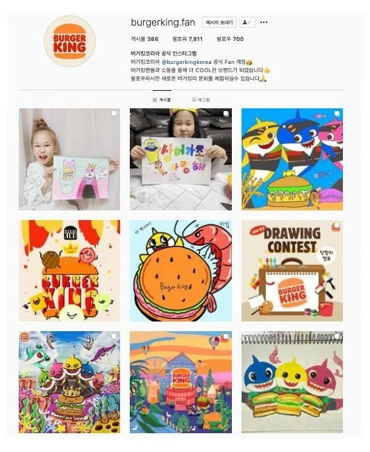 아울러 상어가족 드로잉 콘테스트, 시식평 이벤트, 인증 이벤트 등 온 가족이 함께 즐길 수 있는 다양한 이벤트와 풍성한 경품을 마련해 패밀리 고객들의 눈길을 사로잡고 있습니다. ‘버거킹코리아 공식 인스타그램 팬 계정'에서 드로잉 콘테스트에 참여한 지원자들의 작품들을 엿볼 수 있어요.
