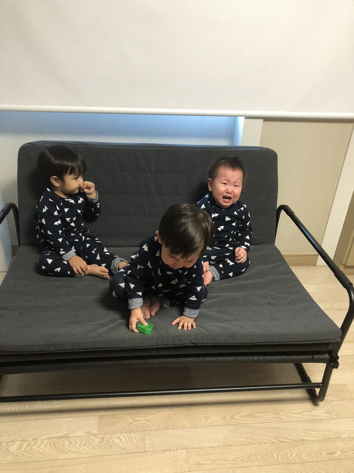 4. 맘먹고 애들 옷 맞춰서 사진을 찍어보려고 했는데, 연습 삼아서 옷 갈아입히기 전에 찍은 사진들은 예쁘게 잘 앉아있더니, 막상 옷 갈아입히고 찍으려니 애기들이 울기 시작했다.