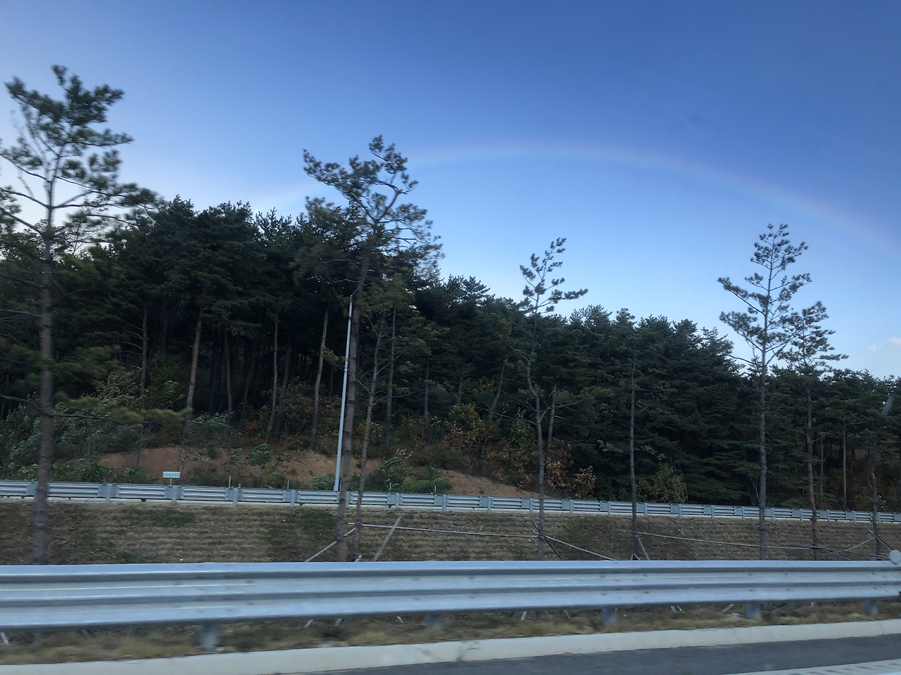 1. 고모들과 고모부, 남편 그리고 아기와 함께 양양 여기저기를 돌아다니기로 했다. 아침 일찍 하늘 높이 무지개가 예쁘게 떠서 가족들 기분 좋아짐.