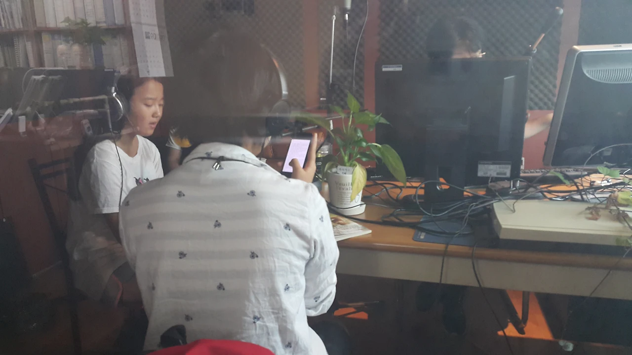 정왕마을학교 라디오반 7주차 수업(9월 12일 오후 2시)은 '미니 라디오 생방송'을 진행한다. 이날 방송은 김나희, 신선희[군서고 1] 학생들이 진행을 하고 지도 교사가 PD를 맡는 형식이다.