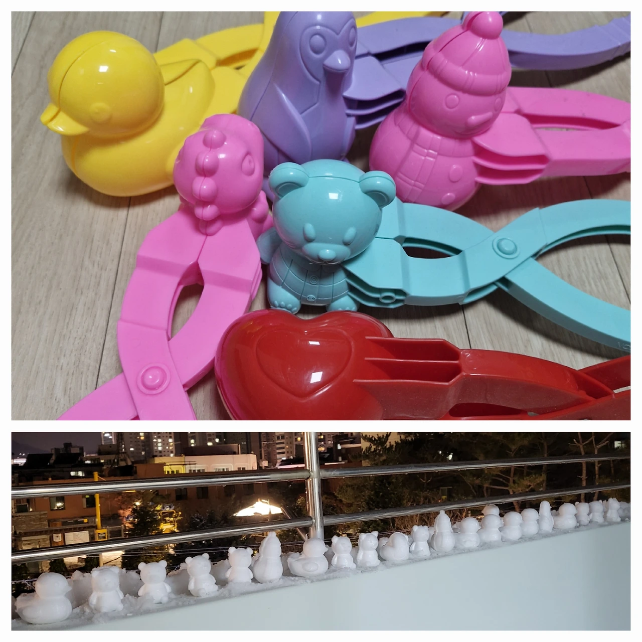 지난겨울 직딩 딸이 엉뚱하게 스노볼메이커(눈사람 모양 틀)를 주문했지 뭐예요. 눈사람, 눈오리, 눈펭귄, 눈곰 등 모양도 다양했어요. 어린 날 마트놀이에 빠져 눈사람을 제대로 만들어보지 못했던 게 아쉬웠던걸까요? 눈 오는 날 여러 모양을 찍으며 실실대는 딸을 보니 괜스레 저도 끼고 싶더라고요.