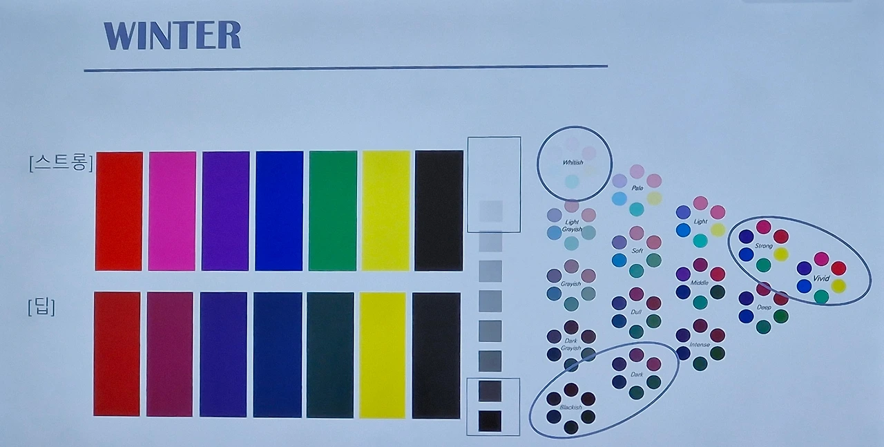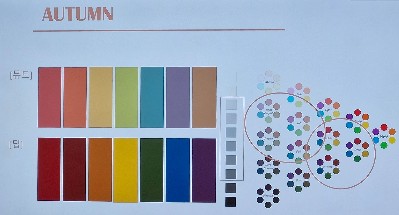 퍼스널 컬러를 더 상세하게 나누면 라이트, 뮤트, 딥, 브라이트까지 다양하다. 4가지 타입이 8가지로 세분화된다.