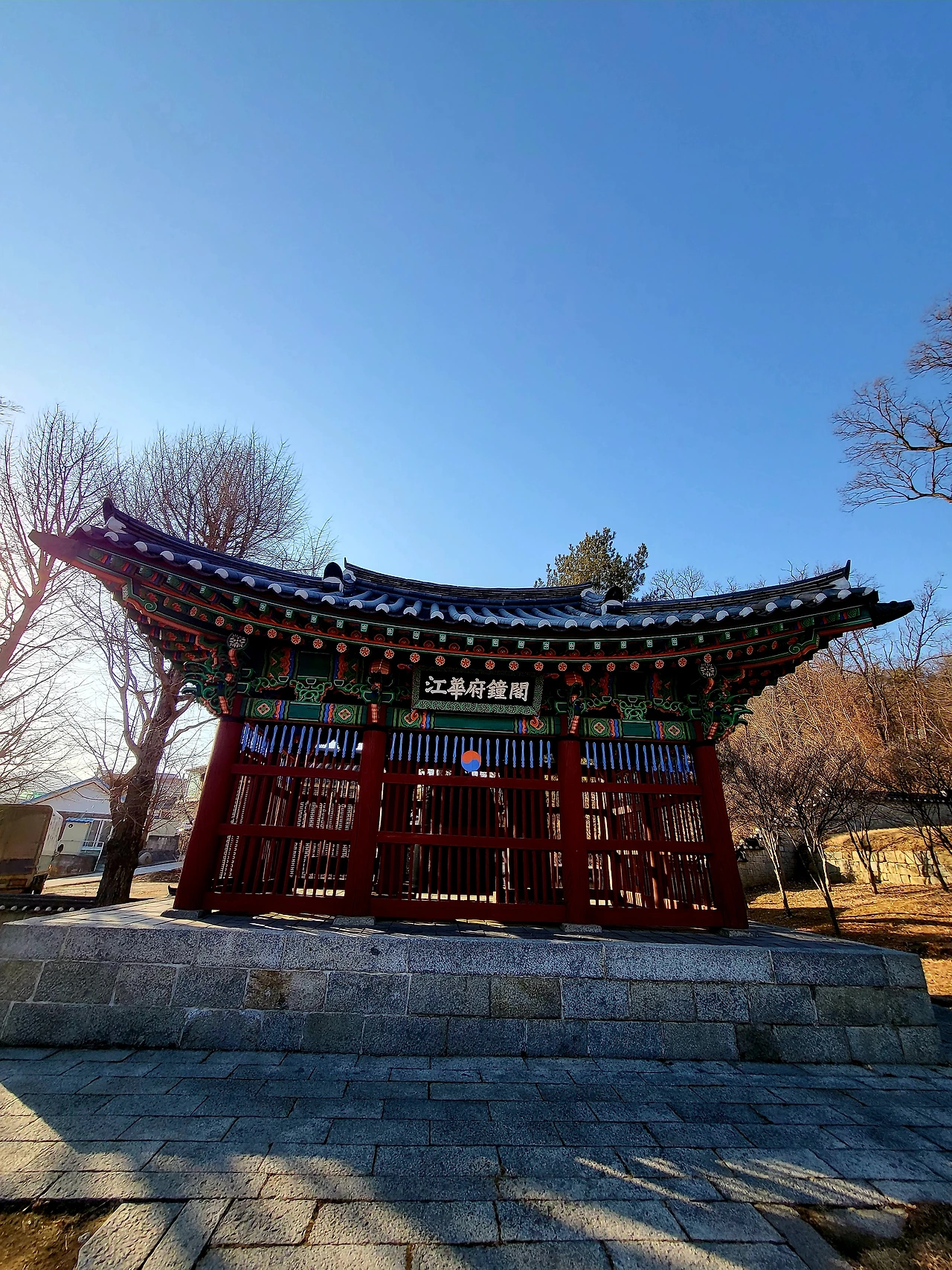 사찰도 아닌 곳에 어쩐 일로 범종이납시었나 했더니 강화 산성의 성문을 여닫을 때 사용하는 행정 목적의 '동종'이란다. 시장 근처나 성문 입구에 설치해 백성들에게 편의를 제공했던 소리 시계인 셈이다. '강화 동종'의 규모로 보아 멀리서도 울림이 제법 크게 들릴 듯하다.