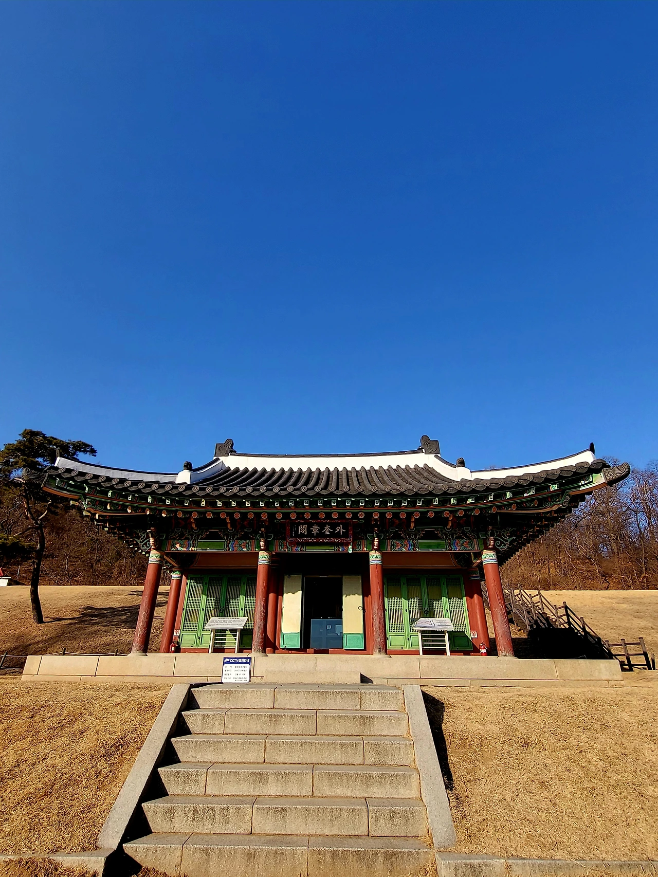 동헌을 내려와 또 하나의 건물로 걸어간다. '외규장각(1782-정조 6)'이라는 현판이 걸렸다. 왕립 도서관인 규장각의 부속 도서관이다. 조선 정조 때 왕실 관련 서적을 보관하기 위해 설치한 도서관으로 왕이 열람하는 의궤(왕실과 국가 주요 행사 정리) 및 서책이 보관되던 곳이다. 안타깝게도 병인양요(1866-고종) 때 프랑스가 의궤 및 서적을 약탈했고 나머지는 불에 타 사라졌다. 아담한 규모로 간신히 맥을 잇는 모습이 애처롭다.