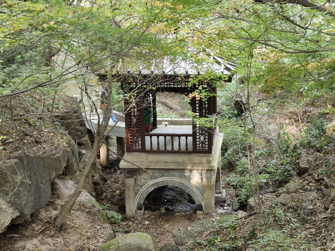 목재로 마감한 한국 전통 정자와 달리 바닥을 화강암으로 처리했다. 문살 문양으로 세운 기둥과 4모지붕으로 건축한 이국적인 양식이 특이하다. 세 사람 정도 들어서니 꽉 차는 느낌이었다. 음풍농월이 웬걸, 이곳은 당구대에 그어지는 선처럼 수많은 밀화가 오갔을 것으로 보이는 공간이다.