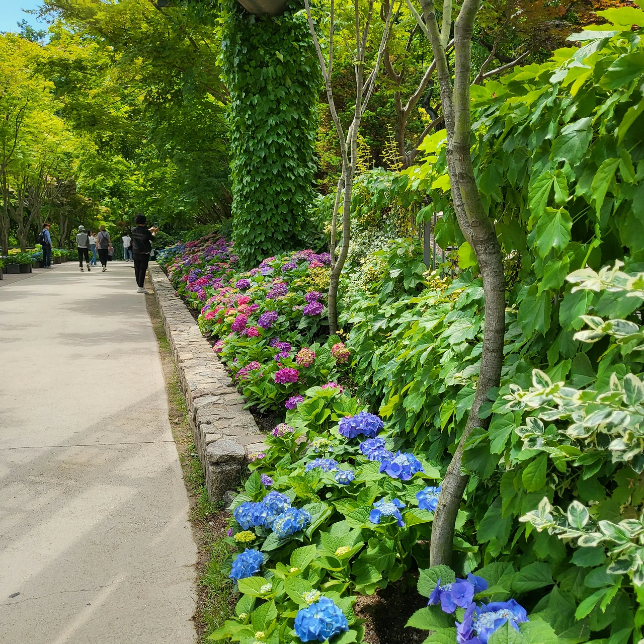 수국원에 도착한 우리는 다양한 컬러에 탄성을 지른다. 토양의 성질에 따라 청색(산성)이나 붉은색(알카리성)을 띤다는 수국. 허리를 숙여 수국과 눈맞추던 여인이 입을 연다.