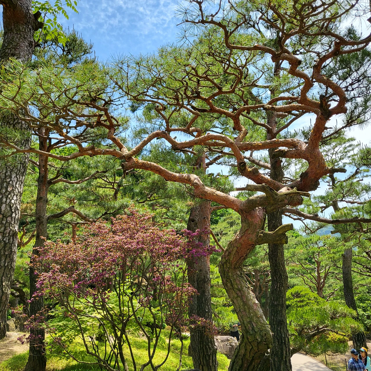 참나무 그늘 아래 관중, 고사리, 고비가 자라는 양치 식물원을 지나자 소나무 정원이 근사하다. 굵은 가지 가는 가지 굽이굽이 뻗은 자태가 고귀하다. '자연적으로 꼬인 소나무'라는 팻말이 꽂힌 흑송도, 조경전문가의 손이 탄 적송도 굳은 절개와 곧은 기백을 품었다.