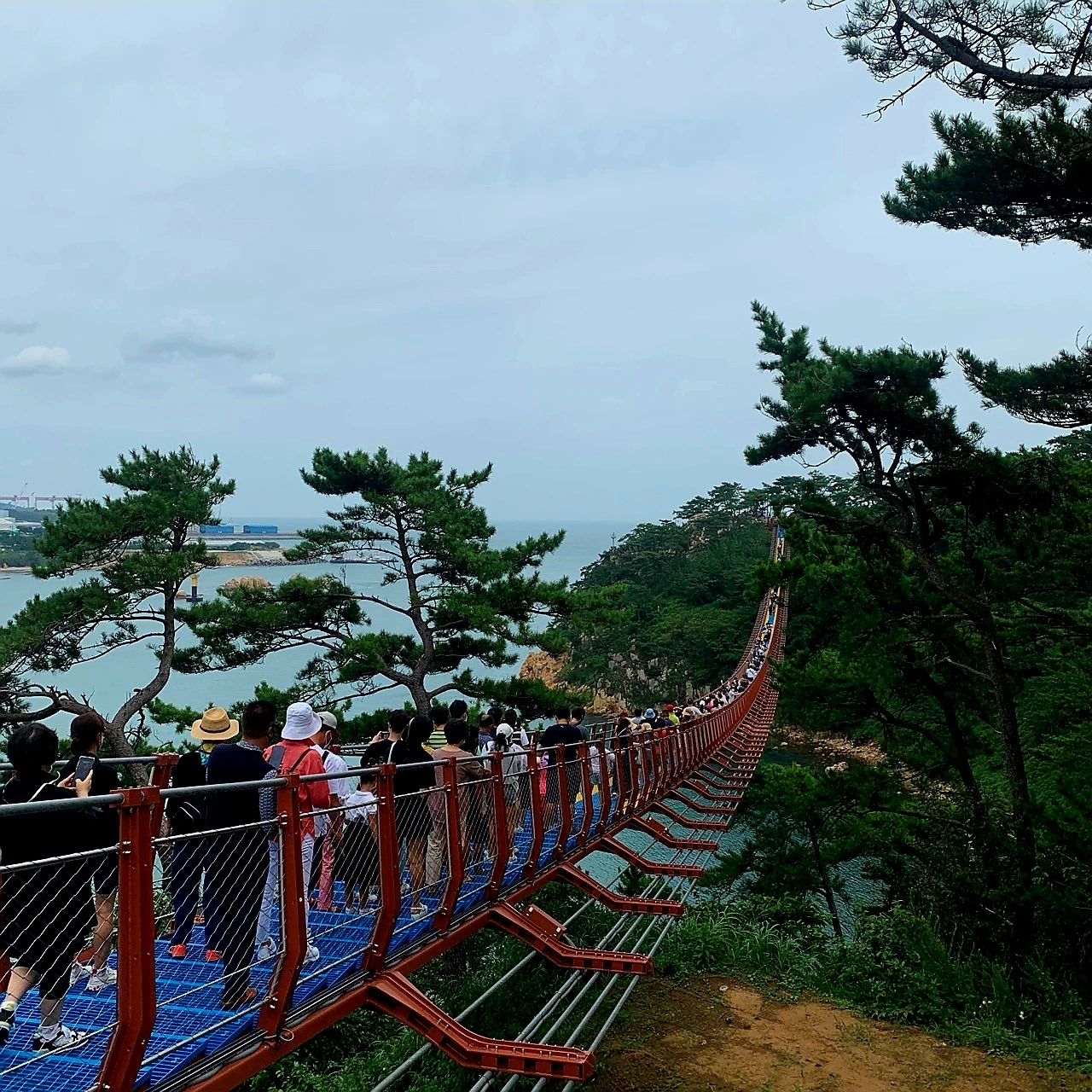 숙소를 나서자 여름 꼬랑이에 붙은 더위가 제법 당찬 기세였다. 너덜해진 기분으로 출렁다리를 향해 가는데 어째 낌새가 수상했다. 개통된 지 얼마 안 된 대왕암 출렁다리는 주말이라는 시간적 요인이 합세해 줄을 서야 입장 가능했다. 뒷덜미가 후텁지근한것을 무시하고 긴 줄에 합류했지만 '대왕암으로 바로 가? 마냥 기다려?' 수십 번도 더 고민했다.