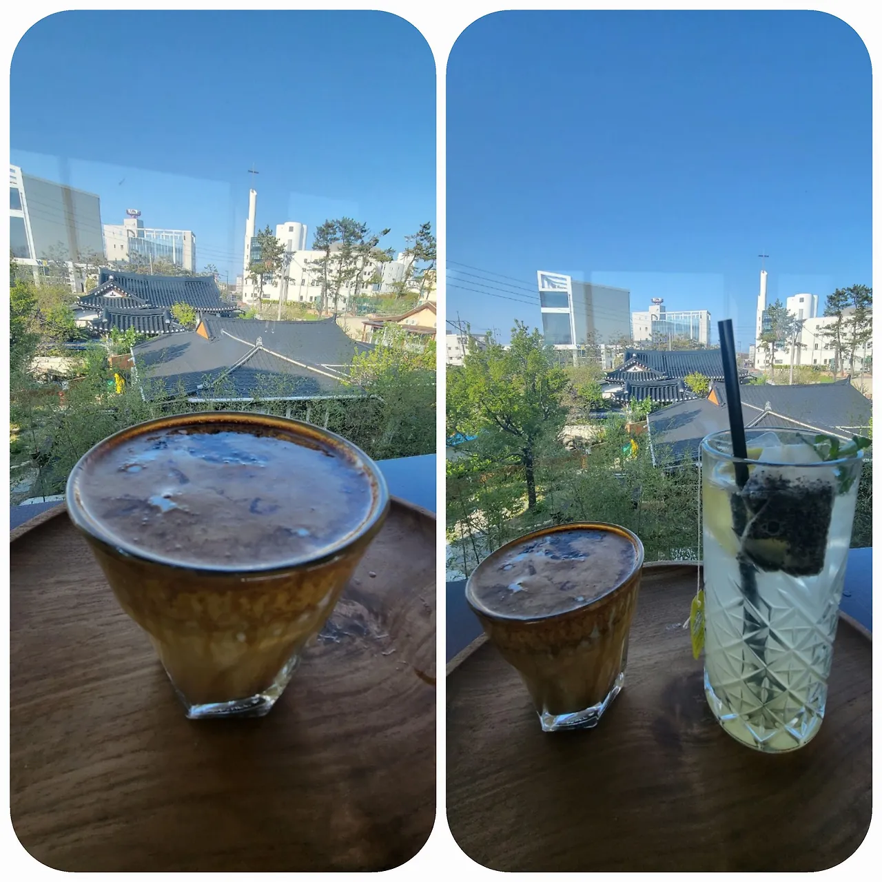 강릉의 4월, 그날은 마치 7월의 땡볕처럼따가웠다. 딸은 시그니처고 뭐고 등짝에 스민 볕부터 식혀야 한다며 레몬에이드를 주문했고 나만 흑임자 라테를 주문했다. 딸에게 재차 흑임자 라테를 권유했지만 소용없었다.