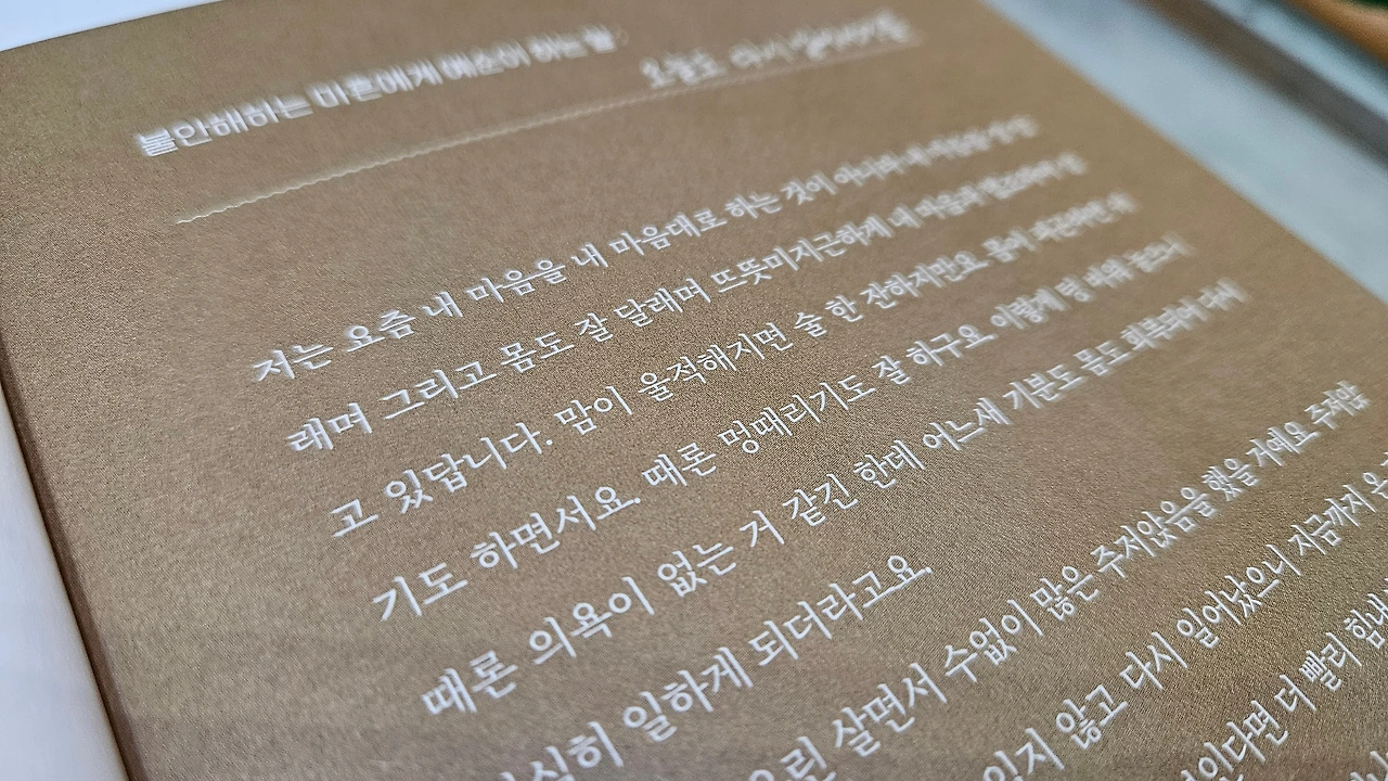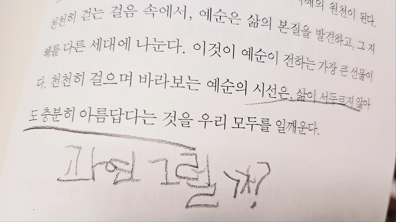 마흔의 열심도 없고, 예순의 느림도 없이 조급함과 불안함으로 떨고 있는 오십의 저는 여전히 흔들리고 아픕니다. 책의 내용이 오롯이 마음으로 와닿지 않습니다. 그런 제가 어색하고 파파님께 미안하고, 뭐 그런 복잡 미묘한 마음으로 책을 읽었습니다.