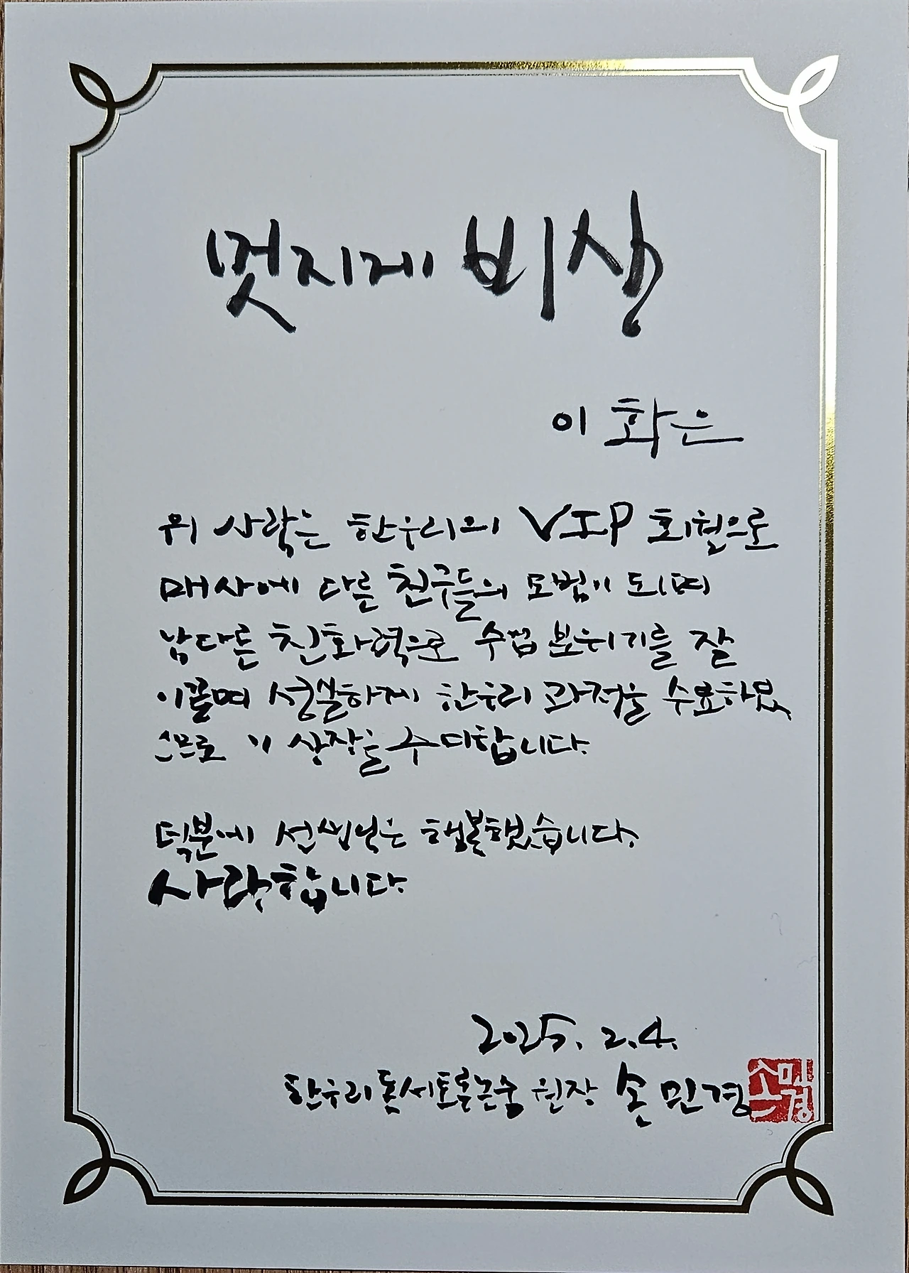 공부방 오픈 때부터 함께 해서 중3이 된 화은이를 졸업시켰습니다.