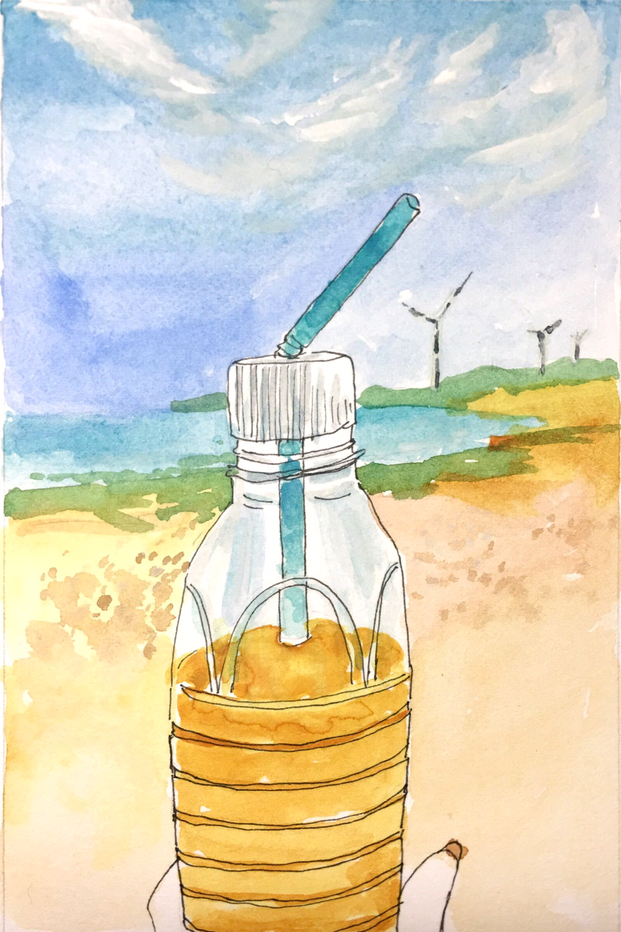 일 년차 도민이 자신 있게 추천하는 망고주스를 사들고 해변으로 나갔다. 바다를 배경으로 망고주스를 든 인증숏을 찍어야 한다는 도민의 조언에 따라 나도 사진을 남겼다.