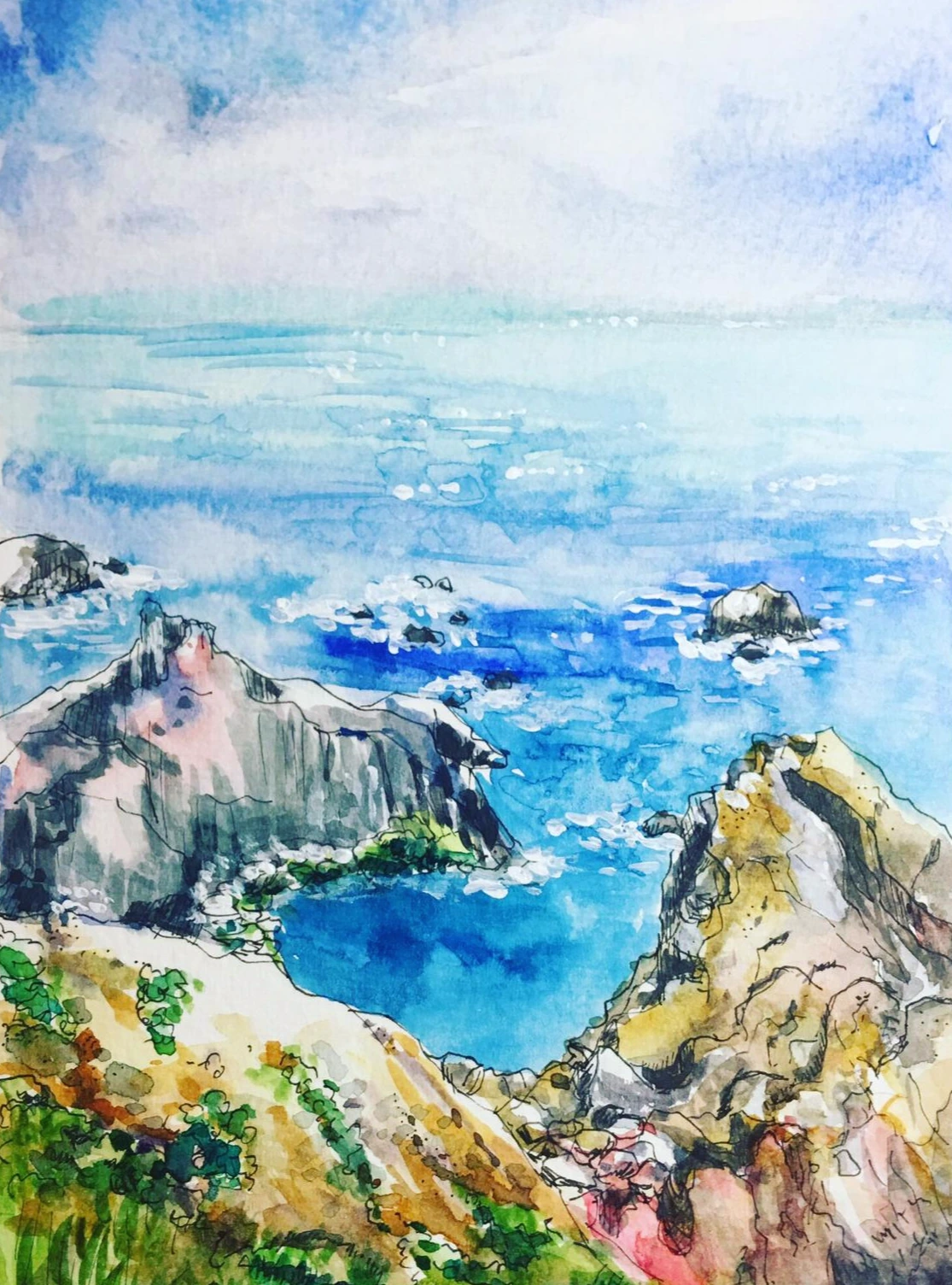 그리하여 정상에서 무엇을 보았느냐 하면... 뭐 이제까지 걸어오며 보던 풍경이었다. 끝까지 가 보았음에도 실망스럽거나 별 다른 풍경을 못 볼 때도 있다. 여행의 묘미란 보장되는 게 아무것도 없다는 것. 별로다 싶으면 그저 재빨리 오던 길로 돌아가면 된다. 내려오던 길에 아까 봤던 바다를 또 봐도 그 아름다움은 질리지가 않았다.