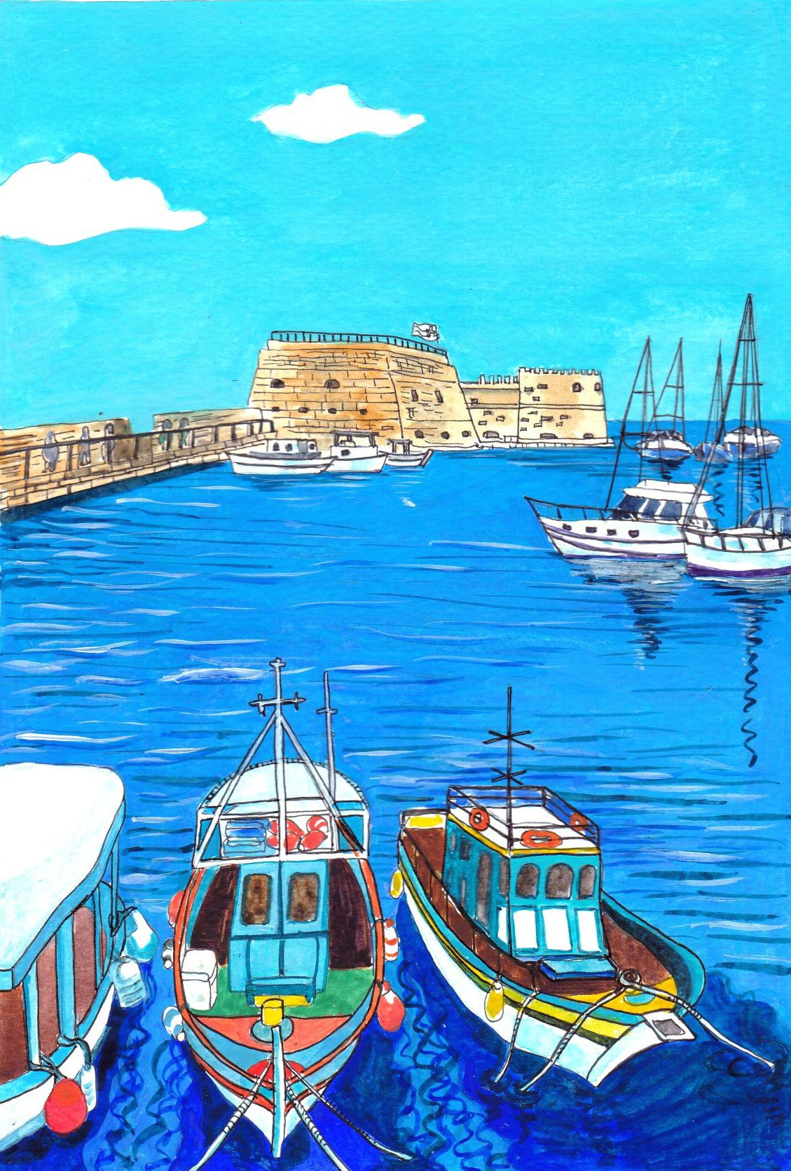 크노소스 궁전에서 나와 시장에서 잊을 수 없는 맛의 수블라키를 맛보고 우리는 바닷가로 갔다. 바다는 믿을 수 없을 만큼 고요했다. 고요하고 드넓은 아름 다운 에게해를 보고 있자니 바람에 따귀를 얻어맞으며 벌벌 떨었던 기억이 어느새 저편으로 잊히는 듯했다.