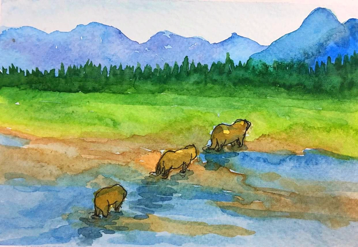 알래스카는 한 여름에도 두툼한 오리털 점퍼를 입어야 할 만큼 추웠다. 우리는 관광객들이 여름 한 철 머물다 가는 리조트의 통나무집을 한 채 빌렸다. 다른 여행객들을 마주치기 싫어 일부러 다른 통나무집과는 멀리 외따로 떨어진 곳을 골랐다. 집 바로 앞에는 강이 있어 연어가 튀어 오르는 광경을 심심찮게 볼 수 있었다.