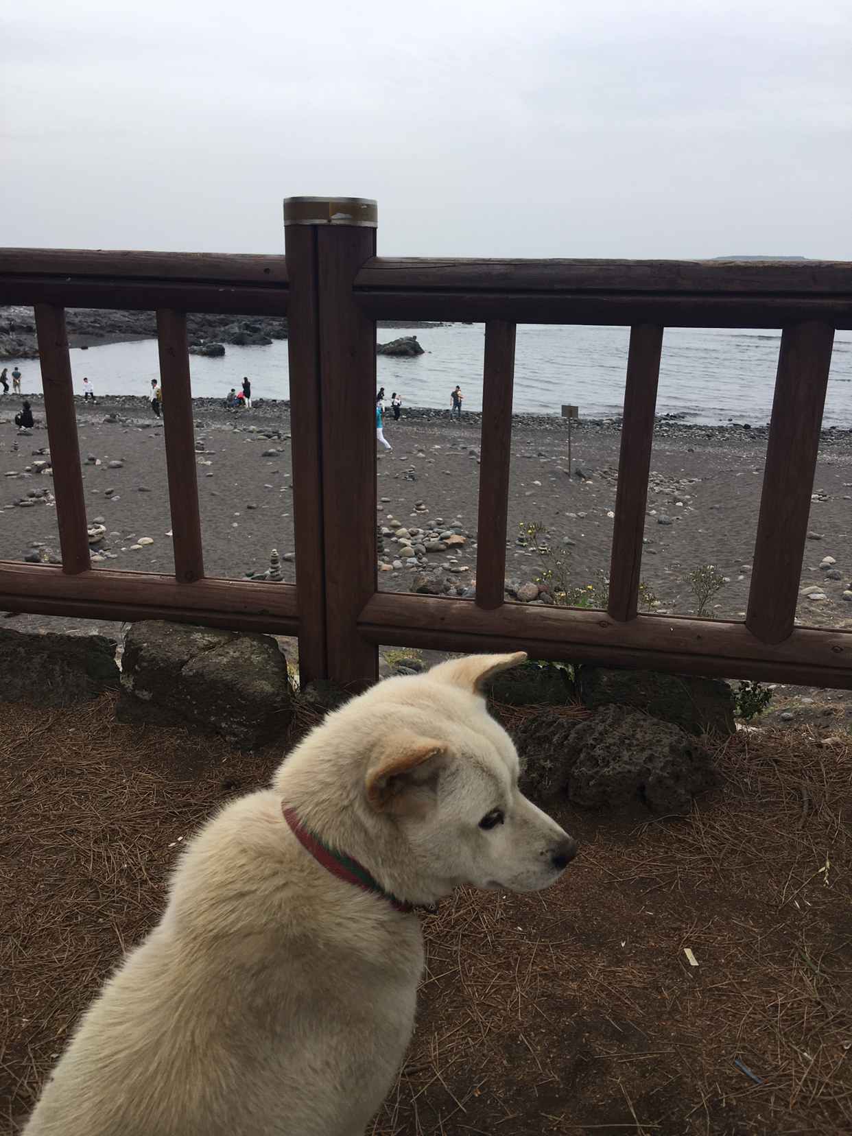 그림을 다 그리자 기다렸다는 듯 벌떡 일어나 바다를 향해 우수 어린 시선을 던지며 사진 찍기 좋은 포즈도 취해 주었다. 날이 점점 흐려지고 있어서 백구에게 안녕하고 자리를 떴다. 녀석은 역시나 쿨한 표정으로 '훗, 애송이들, 다음엔 진짜 주스를 가져오라고!'라고 말하는 듯한 눈빛을 보냈다.