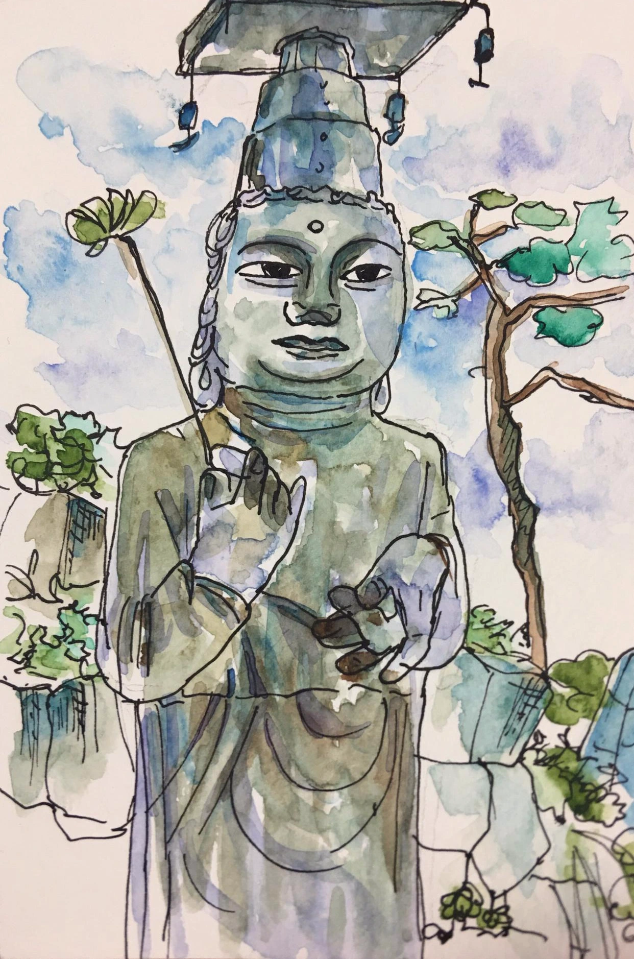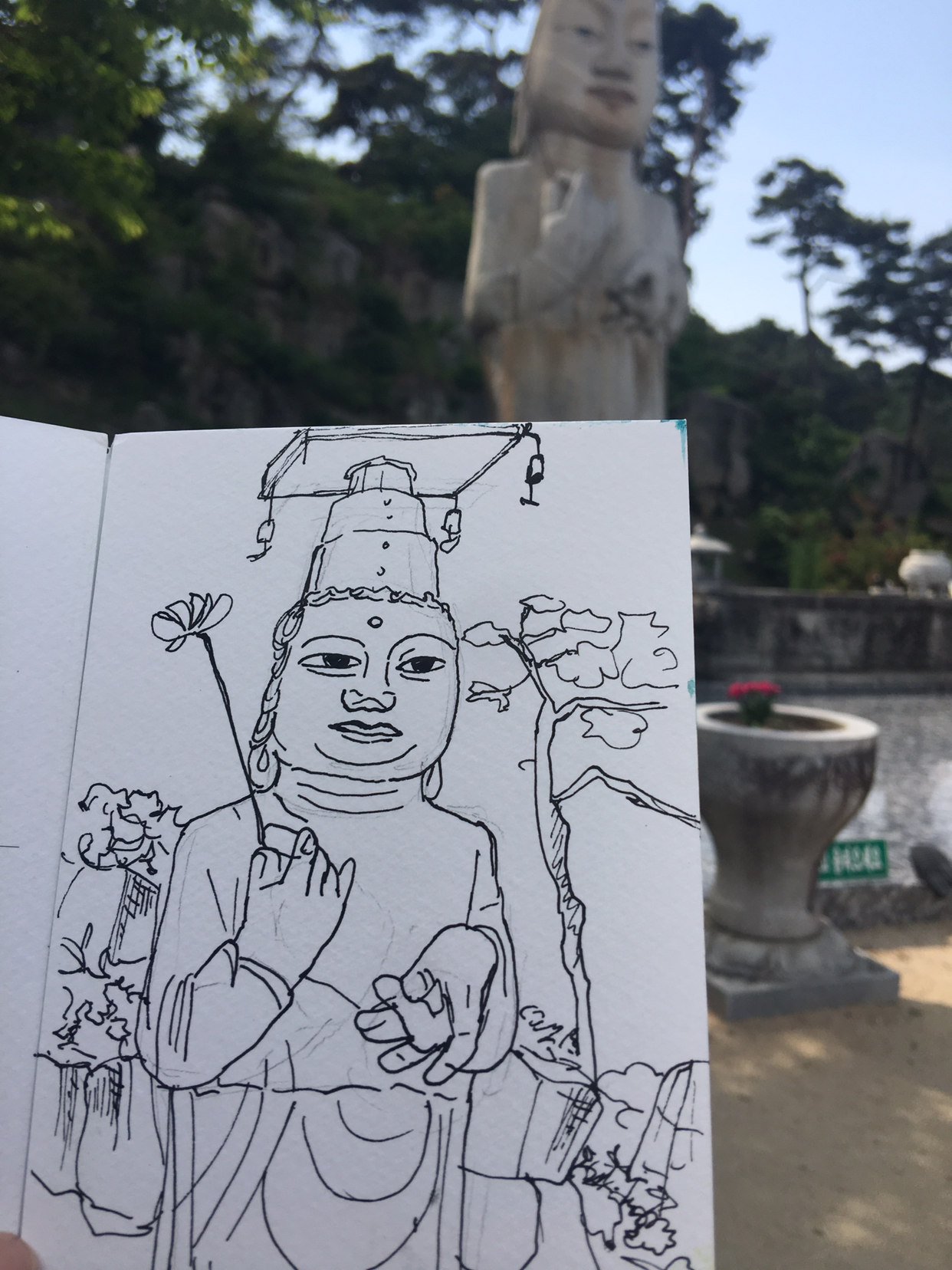 종이에 거석불의 전체 모습을 담아 보았으나 우스꽝스러운 만화 캐릭터 같은 얼굴이 되었고... 이렇게 그린 게 불경죄가 될까나란 걱정도 살짝 들었다.