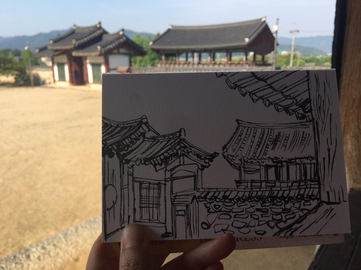 주말임에도 관람객은 우리말고는 두 명밖에 없었다. 조용하고 한가로운 서원에 앉아서 초여름의 시원한 바람을 느끼며 그림을 그리자니 무릉도원이 따로 없었다. 나이가 들어서 그런지 요즘은 이렇게 우연히 발견하는 우리 문화재가 참 좋다. 고택과 서원의 매력에 빠지게 된 것도 불과 몇 개월 사이 일이지만 전국 곳곳에 있는 서원을 하나씩 다 돌아보고 싶다. 무엇보다 돈암 서원은 짬뽕으로 시작된 짧은 여행을 마무리하기에 아주 좋은 곳이었다.