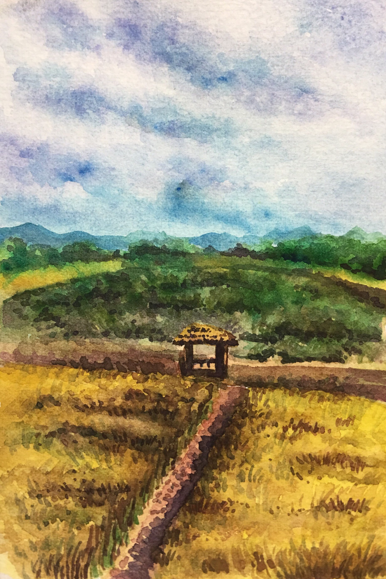 종이와 물감을 꺼내 그 자리에서 보리밭을 그려보았는데 밭을 그리는 건 정말 쉽지 않았다.