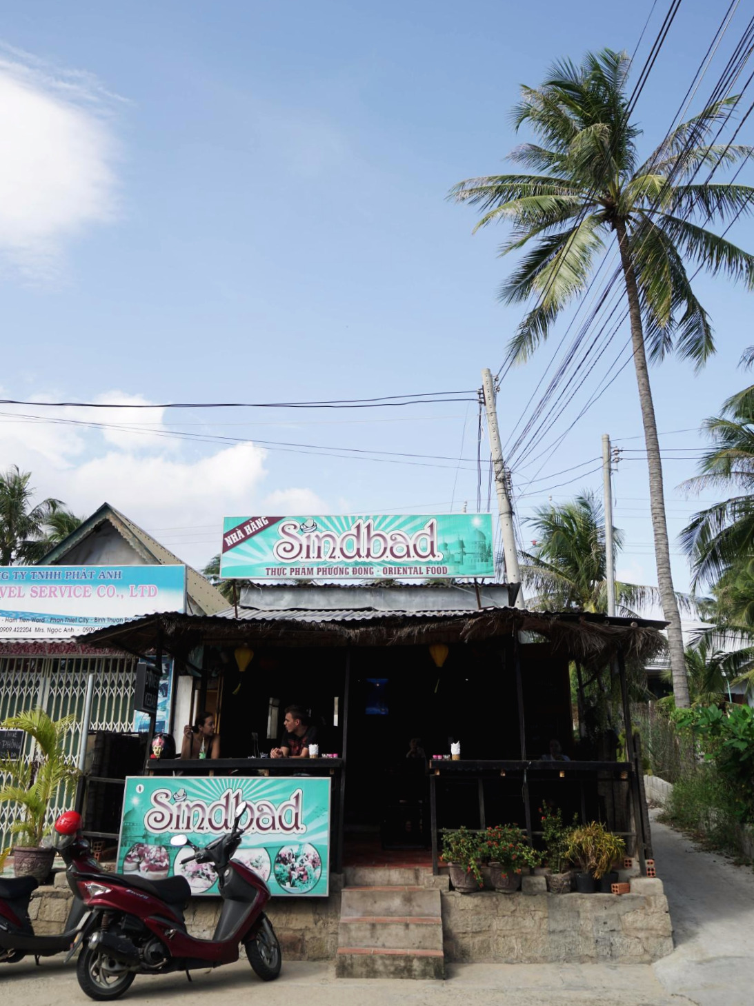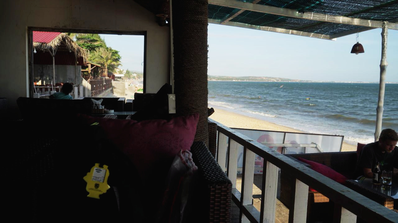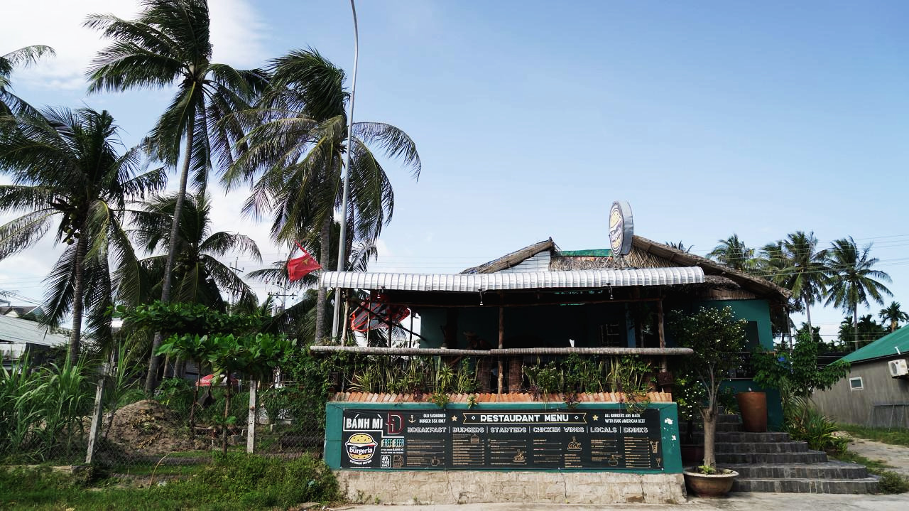 베트남 카이트 서핑 샵과 함께 있는 식당 바다를 바라볼 수 있는 창문이 좋고, 햄버거와 파인애플 밥이 맛있다.