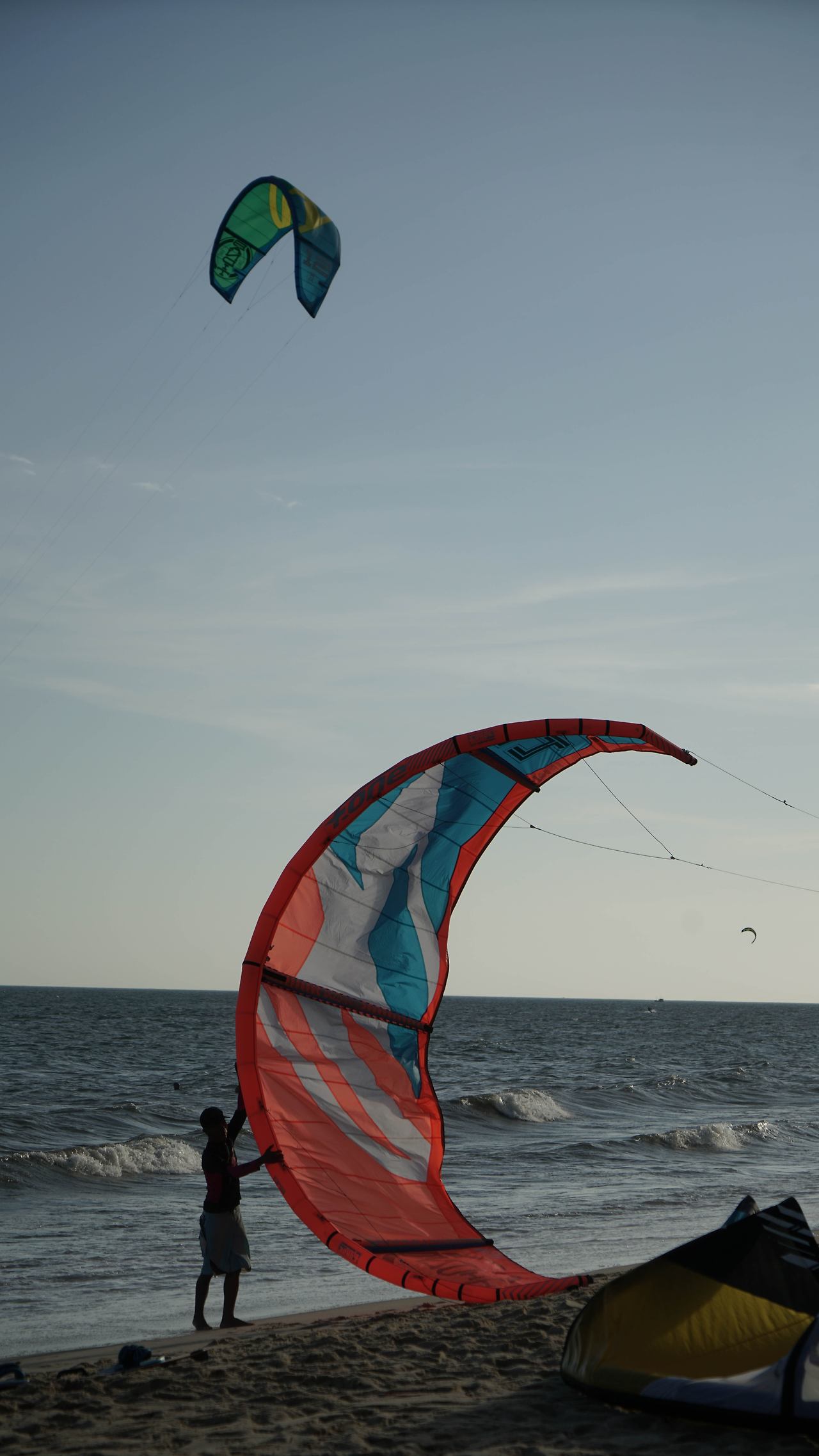 카이트 서핑은 페러글라이딩과 서핑 그리고 웨이크 보드를 합쳐놓은 스포츠이다. 파도와 바람을 동시에 타야 하는 어렵지만 매력적인 스포츠이다.