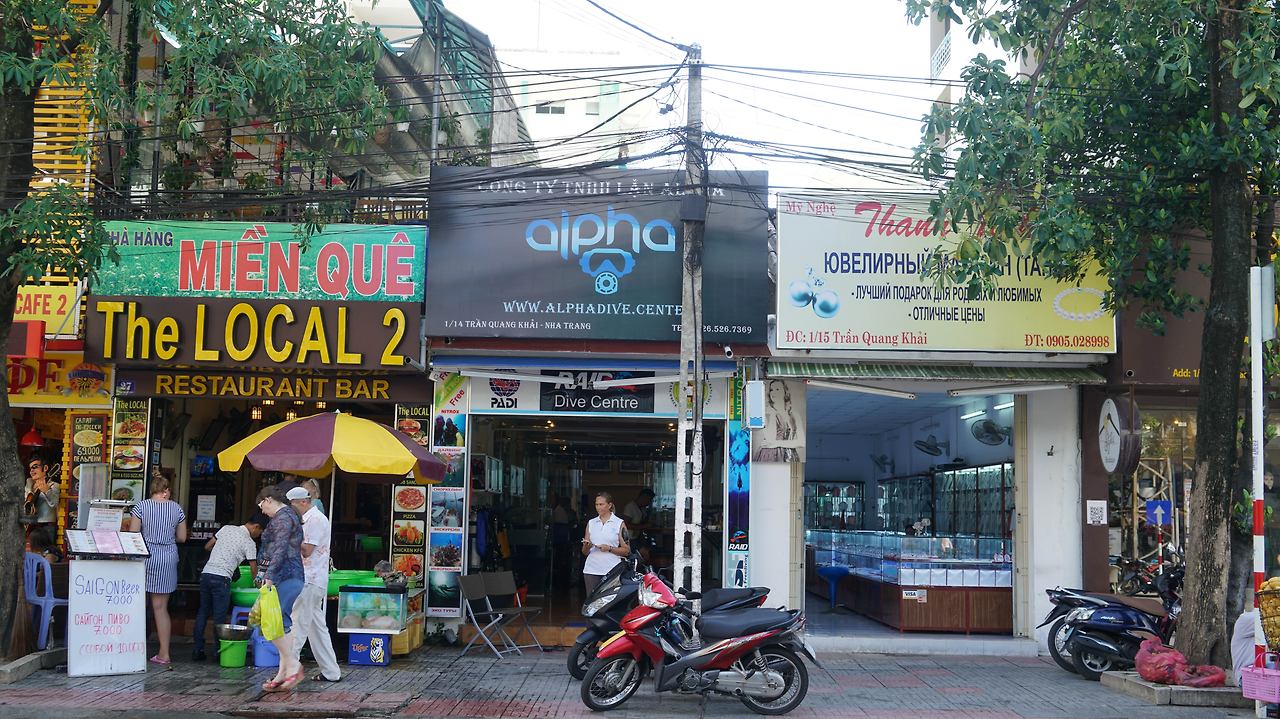 시내에 많은 스쿠버 다이빙 샵이 있었다.