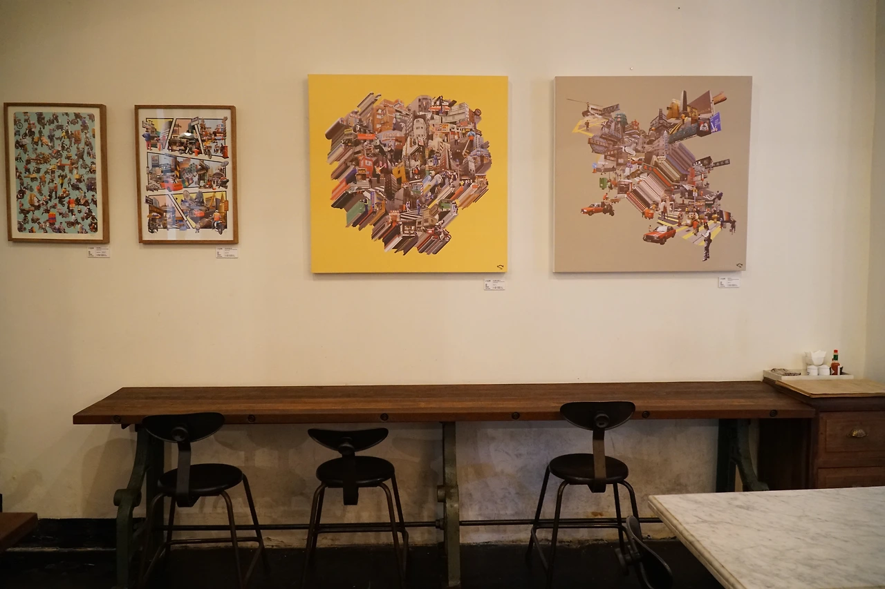 낡은 건물 속 그림들 사이를 걸어 지나가면 나오는 계단을 올라간다