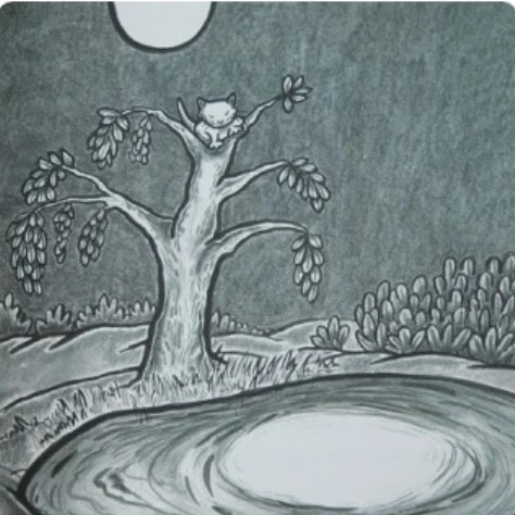 아기 고양이는 살며시 두 눈을 감고, 달을 향해 혀를 쏙 내밀어 할짝거려 보았지요.