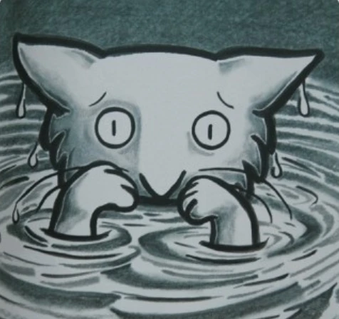 고양이는 냉큼 연못 속으로 뛰어들었어요. 풍덩! 흠뻑 젖어 버린 가여운 아기 고양이.