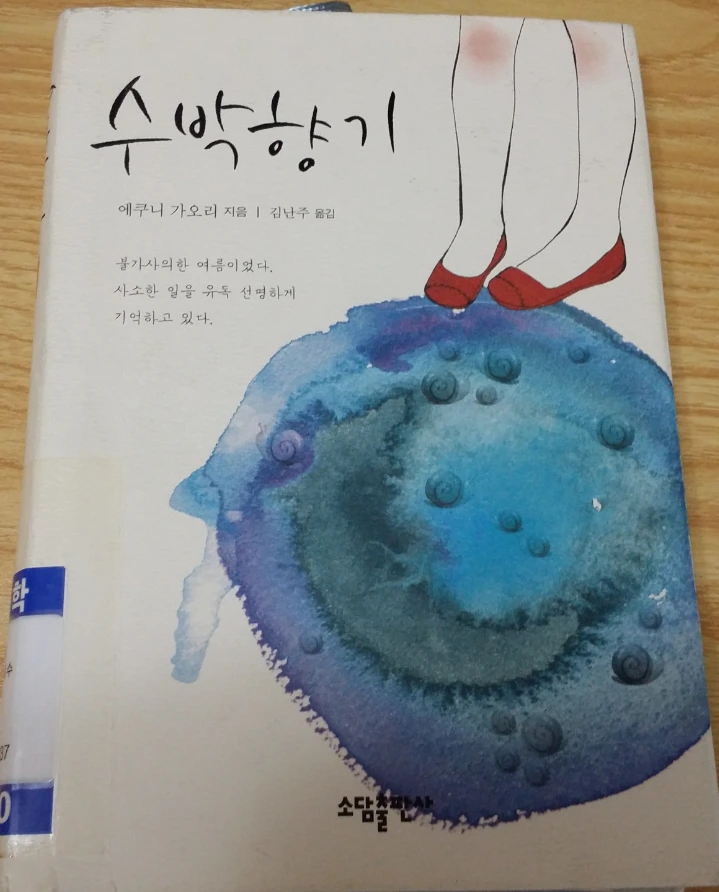 미노루가 수박을 하나 더 집으려고 손을 뻗었을 때, 쟁반을 본 나는 소스라쳤다. 새까만 개미가 수박에 잔뜩 꼬여 있었다. 쟁반에 고인 수박물에도, 그 옆에 놓인 칼에도 개미들이 줄지어 꼬물거렸다. 덧문은 죄다 꼭꼭 닫았는데 어디로 들어왔을까. 그런 생각을 하자 정말로 오싹해졌다. 미노루는 아무렇지 않게 개미가 붙은 수박을 와삭 베어 물었다. 개미들은 물기 많은 빨강 대지 위에서 우왕좌왕했다.