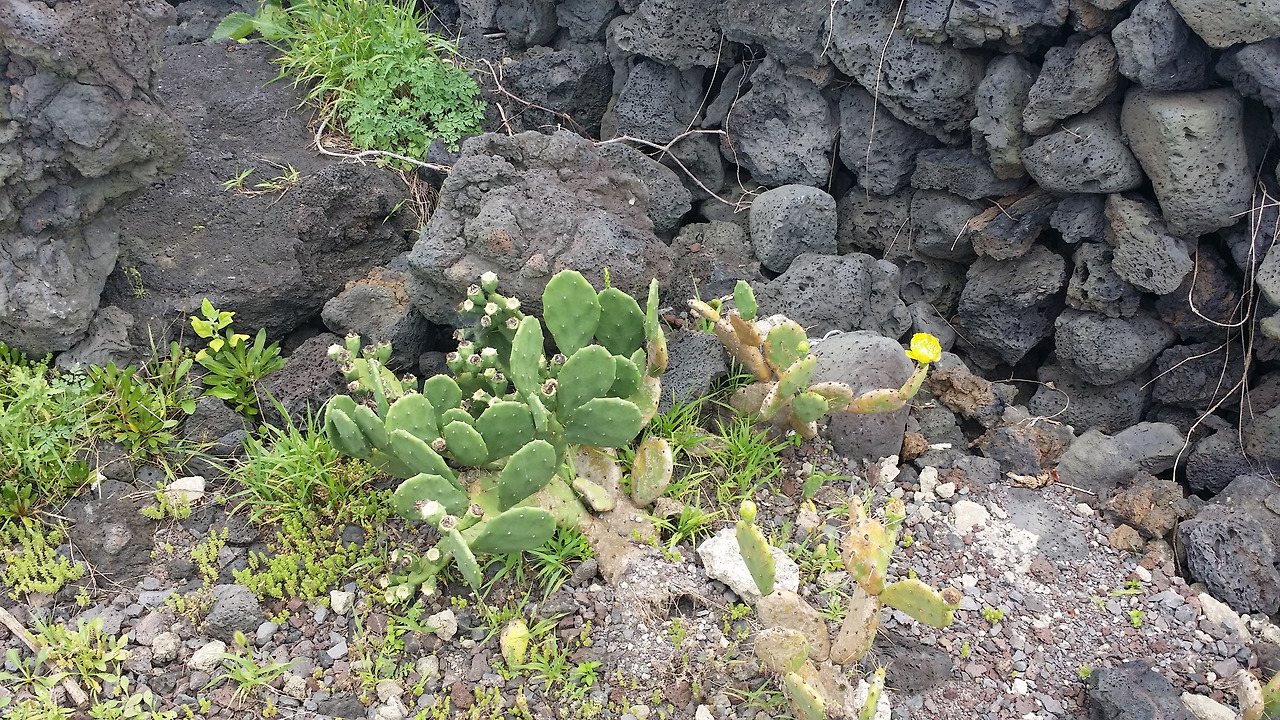 산책로 양쪽 바위 위와 틈에서 여기저기 자라나 있는 선인장.