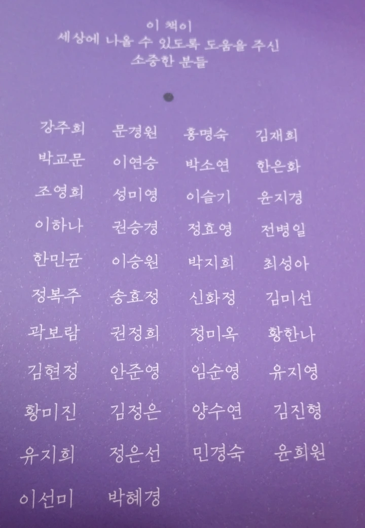 마지막 장 책날개의 '도움을 주신 분들' 페이지에 감사하게도 정말 내 이름이 들어가 있다.