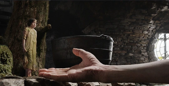 거인은 자신의 정체를 본 소피를 이불채 보쌈해간다.