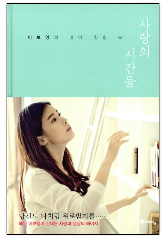 자신의 경험과 생각을 잔잔하게 써내려간 글 끝에 배우 이보영씨가 소파에서 편한 자세로 책을 읽고 있는 프로필 사진과 함께 이 작가의 책으로 《사랑의 시간들》이 소개되어 있었다.