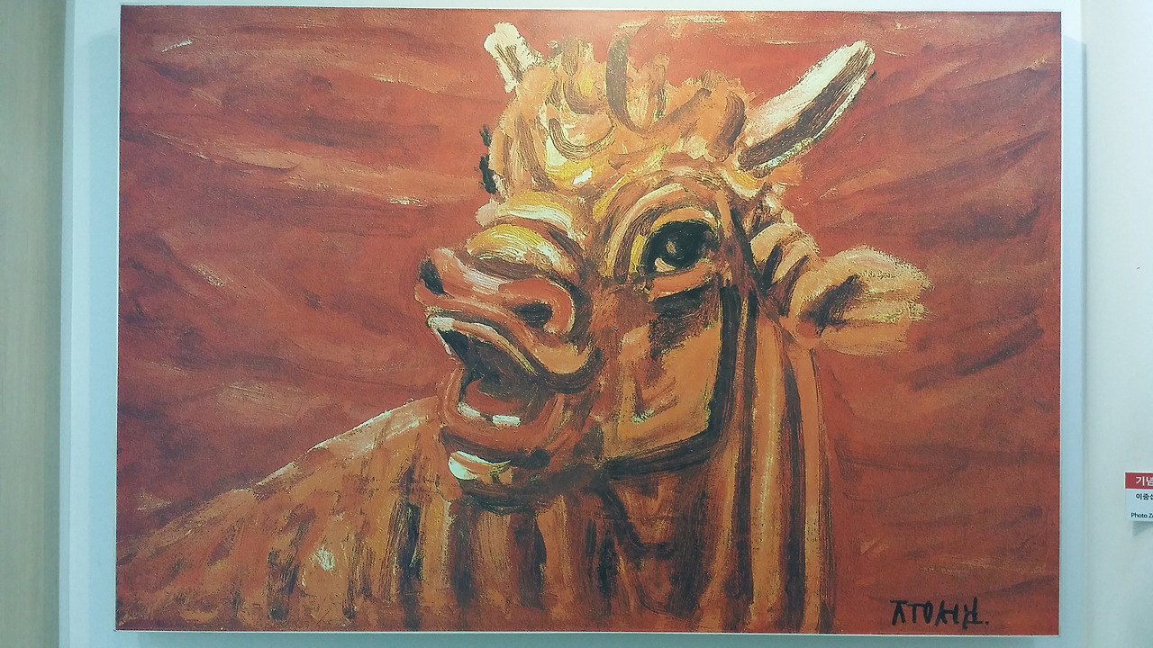 이중섭 미술관 내에서는 1층 전시실에서 2층 전시실로 이어지는 계단 옆 벽에 걸려있는 <황소>작품만이 촬영 가능하다.
