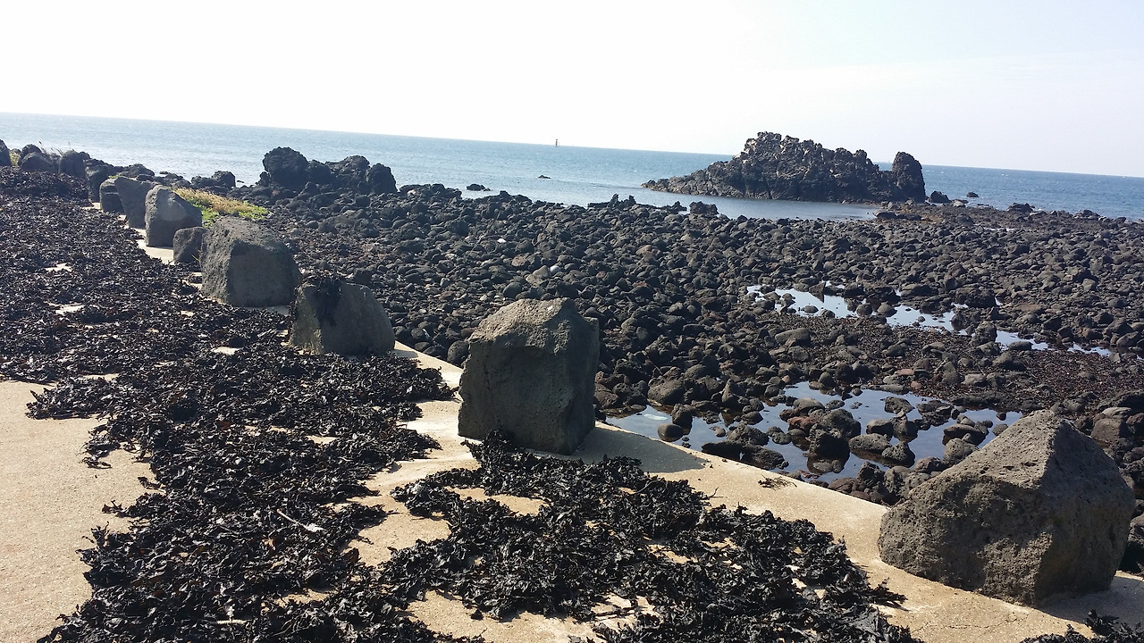 비양도 해안가에는 이렇게 미역이 지천으로 널려있다. 짭조름한 바다의 향 가득한.