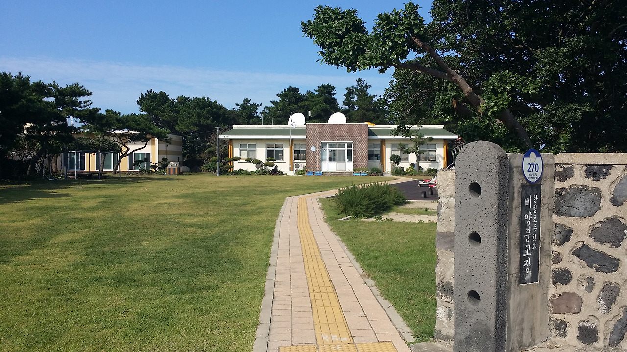 섬을 거의 다 돌 때 쯤 만나게 되는 비양도 유일의 초등학교. 아이들 수가 몇 안 된다고 한다.